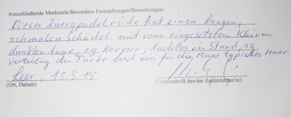 Wurde mit 2 Jahren Registriert und Zuchttauglich geschrieben, bekam von Herrn Eggerking diese tolle Beurteilung.